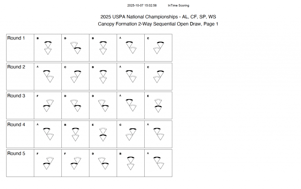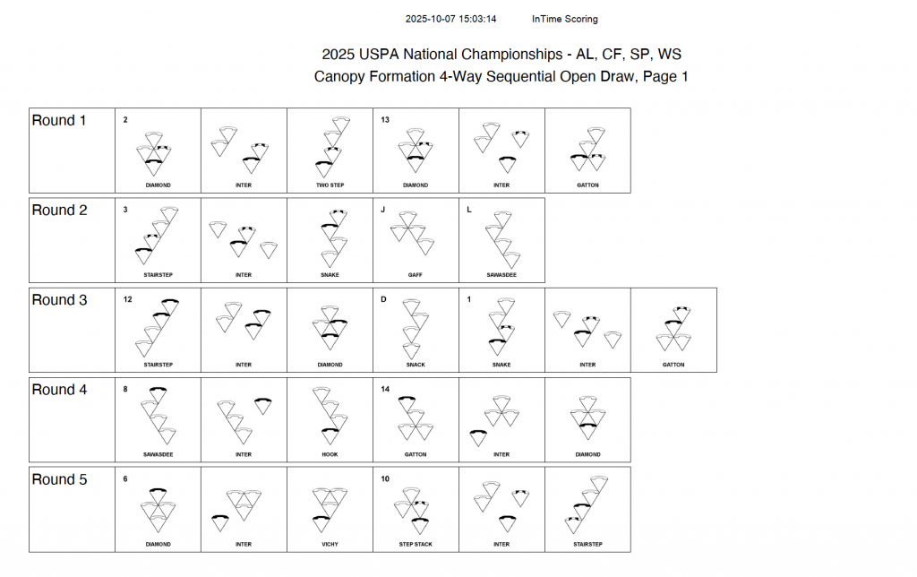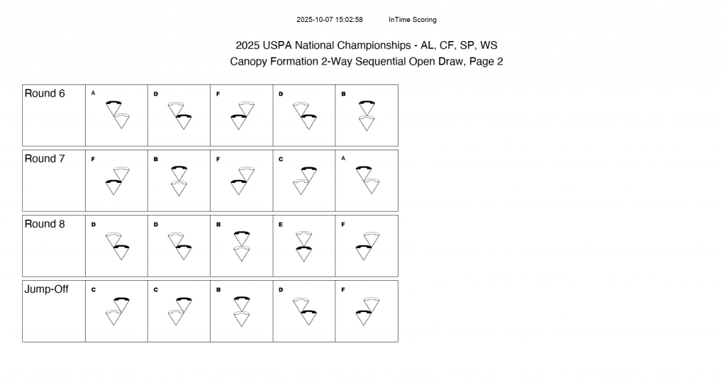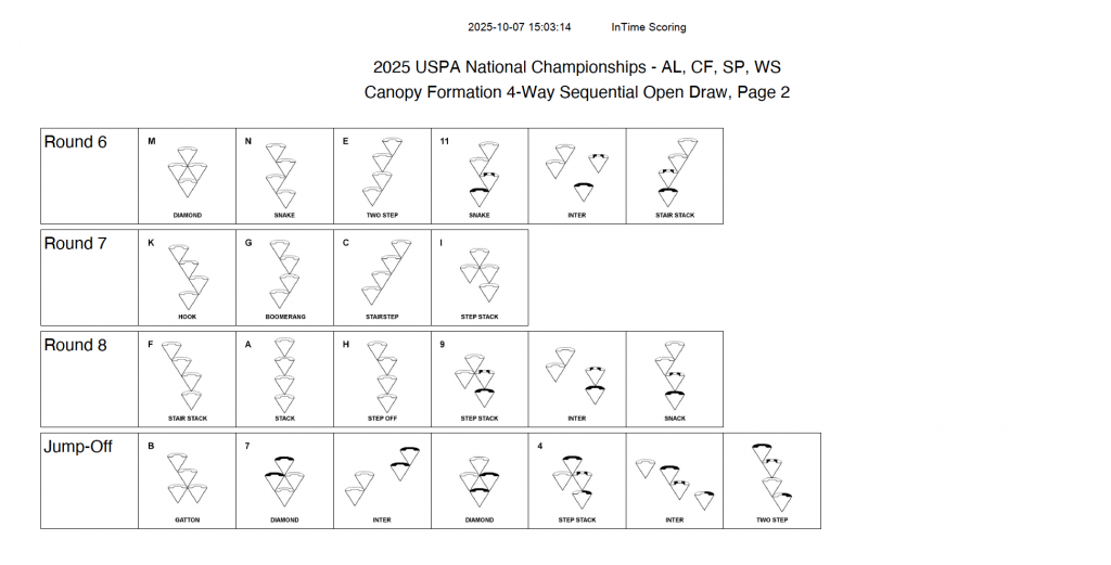 L’altitude de largage était un peu haute au premier saut : 10 000 ft (~3050m), mais correcte au 2ème, à savoir 8000ft (2500m) comme prévu dans les compétitions internationales en Séquence à 2.