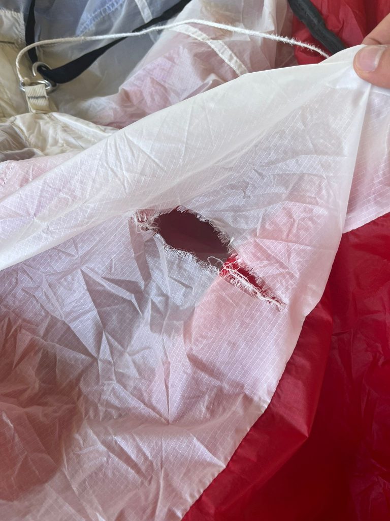 Au posé, Steve et Guillaume ont fait un petit passage chez le Rigger local (Ground Rush Rigging Loft) pour lui expliquer la situation et ce dernier nous a bien gentiment prêter une de ses machines pour avoir une réparation moins « temporaire ». 2 jours à Elsinore et on est déjà comme à la maison !