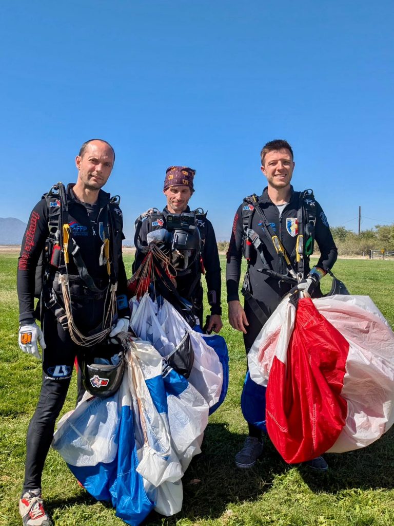 Histoire de bien en profiter, les 2 équipes ont eu droit à des largages à 4000m car, un Boogie ayant lieu, la DZ ne voulait pas de passage à « basse » altitude ce dimanche… Le boogie se termine ce soir, donc demain, nous devrions avoir droit aux altitudes de compétition.
